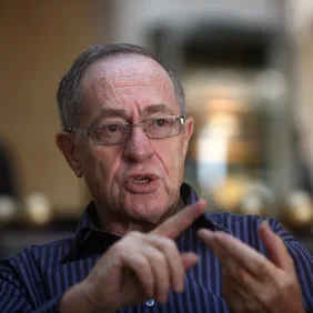Dershowitz turns to Epstein and asks, "Great to see you. What are you doing here?" to which Epstein responds, "Just hanging. All we get down here is Fox News, and it’s been a joy to see you work."