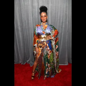 Billie Eilish had a record-breaking night, being the youngest artist to win in all four of the Grammy's major categories. Tyler, The Creator, J. Cole and 21 Savage all took home their first prizes from the Recording Academy. YG sidestepped a questionable arrest on Friday to partake in a tribute to the late Nipsey Hussle alongside Meek Mill, Roddy Ricch, John Legend, Kirk Franklin and DJ Khaled. Overall, the affair was filled with highlights, another of which were the outfits that the stars rocked on the red carpet. Here's a roundup of some of our favorite looks.