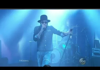 Yela and look-alike best friend Travis Barker teamed up for Yelawolf's performance on Jimmy Kimmel last night, where he performed Love Story single "American You" for the audience.