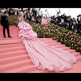 Nicki Minaj has made the color pink her signature aesthetic ever since the beginning when she titled her debut album Pink Friday. As the years have went on, we've seen the hue pop up in future projects, including the 2012 follow-up Pink Friday: Roman Reloaded and her 2014 effort The Pinkprint. It even felt like the 2019 Met Gala was literally catered to Onika when she showed up in a pink gown (seen above) that perfectly matched the event's pink carpet. Keeping up with old traditions, Nicki showed off a popping poolside look today when she touched down in Port of Spain that was dripping in, you guessed it, pink hues galore. From the hair to the hat and all the way down to her, umm, pinstriped bodysuit and purse, Minaj proved that some old habits just simply die hard. No complaints over here!