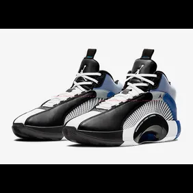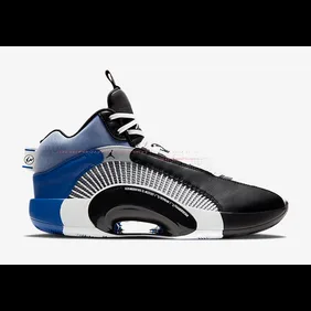 Now, however, there have been rumblings that the Air Jordan 35 could be getting its own Fragment model that would more or less resemble the colorway from the Fragment x Air Jordan 1 collab back in 2014. Thanks to these photos from sinhoushin, you can see what appears to be the Air Jordan 35, in all of its glory, with a black and white upper supported by blue highlights on the back heel. This all comes together for a pretty dope colorway that will certainly appeal to all of Fragment x Jordan Brand fans out there.
