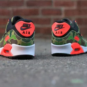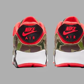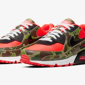 The kicks in question are essentially an alternate take on the exclusive "Duck Camo" Air Max 90 that released in 2013 as part of Nike's collaboration with Japanese sneaker boutique Atmos. The two sneakers share the familiar camo print upper, but the 2020 version opts for bright orange detailing on the toe box, ankle collar and outsole rather than the black used on the OG pair. Overall, the kicks appear to be much more of an "alternate" than a "reverse," but we're not here to argue semantics.
