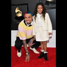 Chris Brown attended last night's Grammy's with his favorite lady as his date - his 5-year-old daughter Royalty. The Heartbreak On A Fullmoon singer was nominated for Best R&B Song for his single "No Guidance" featuring Drake. While he didn't pull in a win (since PJ Morton's "Say So" featuring JoJo got the award) Chris was all smiles next to his camera excited daughter.
