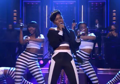 While Jidenna's "Classic Man" continues to build buzz, Janelle Monae has released her new single, "Yoga," which also enlists the talents of the newcomer. The two brought the single-- which Monae described as the "song of the summer" --to Fallon last night, and as usual, Janelle brought the house down with a complex choreographed dance routine.