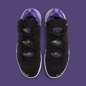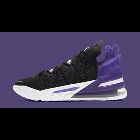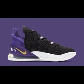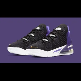 In the images below, we can see the brand new LeBron 18 with a mostly black upper. From there, the back heel is purple while the Nike swoosh is gold. We are also given a white midsole to add some contrast to the overall design. If you're a big fan of the Los Angeles Lakers, these will definitely be up your alley, especially for those who like the look of LeBron's sneakers.