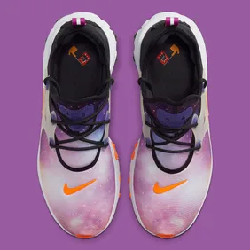 The latest offering features a fresh perspective on Nike's infamous "Galaxy" motif. The toe box of the shoe has a starry pattern that is made of shades of purple and pink. From there, the colors fade into black on the back heel in a gradient fashion. Orange highlights are placed onto the midsole as well as the Nike swoosh on the toe box.
