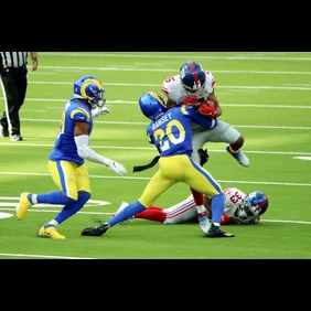 A massive brawl broke out between the New York Giants and Los Angeles Rams, following Sunday's matchup. The fight was presumably sparked by the public feud between Giants wide receiver Golden Tate and Rams cornerback Jalen Ramsey.
