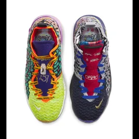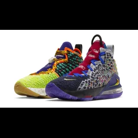 A "What The" colorway of the Nike LeBron 17 has been teased over the past month or so and now, we are finally getting some official images. Just like every other "What The" shoe, this model has a mismatched upper with lots of vibrant colors that will make you stick out on the court. If your main goal is to keep a low profile amongst your peers, we highly suggest steering clear of these. However, if you like the flashy look, then by all means, go for it.