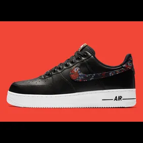 The latest Nike Air Force 1 Low takes an interesting approach as it features a white midsole and black leather upper. As far as the big difference here, you will have to look towards the swoosh. In the photos below, you can see that the swoosh features some colorful floral prints that help spruce up the look of it, quite a bit. Overall, it's a unique concept and if you want a special-looking Air Force 1, these could definitely be great for you.