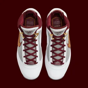As for the look of these shoes, they feature a white leather base, all while grey textures are placed on the side panels. From there, we are met with some regal shades of gold and burgundy which are placed on the Nike swoosh, cuff, midsole, and even the tongue. It's a gorgeous retro of a model that many missed out on the first time it dropped in 2010. If you're in need of a nostalgic addition to your sneaker closet, these are a must-cop.