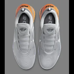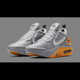 As you can see, the shoe features a grey upper with an orange bottom and back heel. Overall, the shoe is quite bulky which makes sense when you consider how there is auto-lacing technology placed inside of the midsole. This shoe will function with either manually or through the App that has been created specifically for Nike's auto-lacing range.