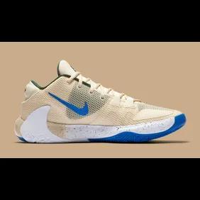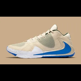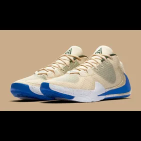 If you're a Milwaukee Bucks fan, then you know about the team's "Cream City" city edition jerseys. The uniforms are a gorgeous shade of creamy beige with some blue and green accents. The Zoom Freak 1 colorway below follows that exact same color scheme and it makes for a beautiful shoe that will certainly stand out on the court. This p[articular model may only appeal to Bucks fans although perhaps some general consumers will be swayed by the strength of the colorway on its own.