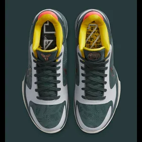 In the official photos below, you can see a green, white, and yellow Kobe 5 that truly encapsulates the spirit of the "EYBL" line. Forest green is the primary color on the upper and it creates a clean neutral aesthetic that would be perfect for virtually any ballplayer.