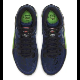 Now, the KD 13 is being previewed in a peculiar new colorway dubbed "The Planet Of Hoops." This offering lives up to its name as it features a space-like aesthetic. The upper is navy blue with black planetary patterns that feature basketballs. The midsole is black with a splash of neon green that helps add some much-needed contrast. There is an Air Zoom midsole which enhances comfortability and will make this a dope shoe to use out on the court. Unfortunately, due to COVID-19, it might take a while before you're able to get out there.