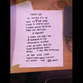"Thank God. Hi Chicago, it's Ye. This is the Gap Store I used to shop at when I would drive my Nissan from the Southside. So Blessed. Thank God and I am humbled at the opportunity to serve. I put my heart into the color pallette and every detail," the message reads before things go full Yeezy. "I love Tron the original. Do you like stuff. I don't know what to do with my hands," he continued before signing off "Love YZY Yeezy."