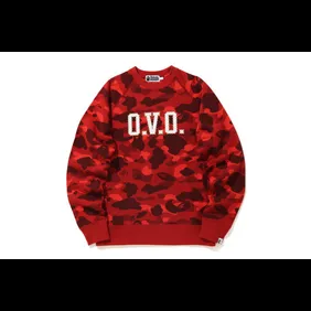 The merch comes in a range of colorways, including red camo, regular camo, black, and grey. Every piece features the infamous BAPE logo, as well as the OVO owl insignia alongside it.