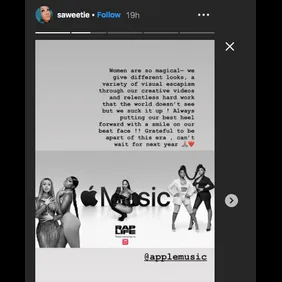 "Tap In" rapper, Saweetie, took to her Instagram story on December 1 to shine light on, and show some love for all women in the music industry. The last two decades have been a painfully slow but monumental turning point for women in hip hop — a male dominated genre. But now more than ever might be considered a renaissance for female rappers, specifically.