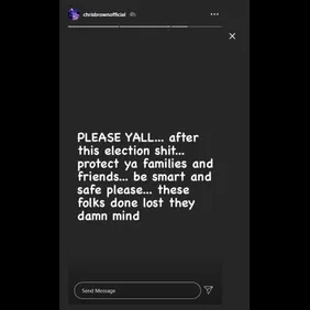 Election day is here and while millions of Americans have already cast their votes by mail, tens of millions of people have lined up at polling places throughout the country today (November 3). The onslaught of election coverage is enough to send anyone into a panic, but Chris Brown dropped off a bit of advice for people who are concerned about what things may be like when election day comes to a close.
