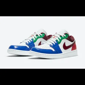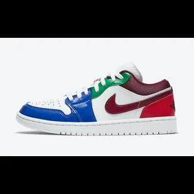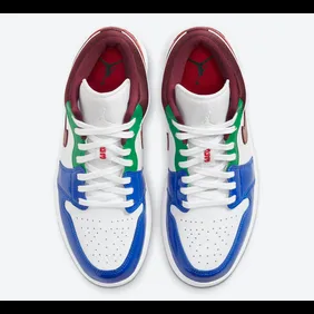 As you can see from the official images below, the shoe in question is a "multi color" model that has a mixture of patent and smooth leather. This is one of those Air Jordan 1 models that immediately grabs people's attention, and you really can't help but marvel at these. There are four main colors to be seen here including blue, green, red, and burgundy. These colors are placed on top of a white base which helps add some nice contrast. If you're someone who likes colorful low-tops, these are about as perfect of a shoe as you'll find.