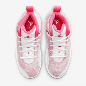 The colorway in question is called "Hyper Pink" and it is easy to see why the shoe was given such a name. This shoe is covered in light pink suede, all while white is on the midsole and the tongue. From there, hot pink forms outlines throughout the sneaker and even on the Jumpman logo which is neatly placed in the middle of the tongue. This is one of those shoes that immediately jumps out and if you want your kid to look fresh at school, these might just be the wave.