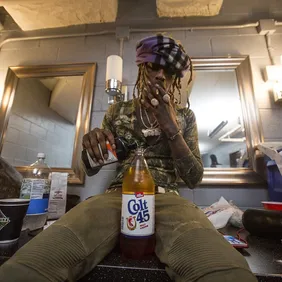 One of his biggest tracks is a braggadocious trap banger about not one, but two ladies. He gets a little x-rated with lines like, "I fuck it, I suck it, I beat it down, then she beat me to the ceilin'" and also keeps it real with, "I just bought a Bentley and a bitch came with it."