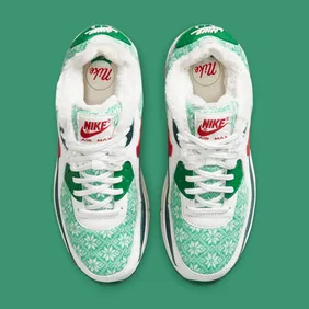 In the official photos below, we can see a green and red children's Nike Air Max 90 which is dressed in white snowflakes and even some nice warming fluff on the cuff. This Air Max 90 colorway is meant to take on the look of a Christmas sweater, all while embracing the colors of the infamous holiday. While it may be somewhat overboard, there is no doubt these are cute.