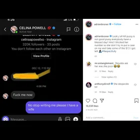 He has enough drama going on in his life without needing an additional scandal from Celina Powell. We've recently reported on Adrien Broner facing off with a judge over an unpaid $800K judgment awarded to a woman who claimed that the champion boxer assaulted her years ago. Broner told the court that he's broke and only has $13 to his name, however, he's managed to stay afloat financially with the help of his "rich friends." Broner returned to Instagram with a screenshot of a conversation, not about his financial troubles, but of a brief exchange with well-known celebrity groupie Celina Powell.