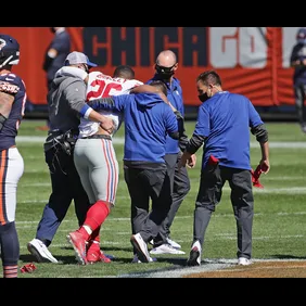 Giants running back Saquon Barkley was carted off the field during the team's 17-10 loss to the Chicago Bears, Sunday. Following the game, Barkley deleted every post on his Instagram except for an image honoring the late Kobe Bryant.