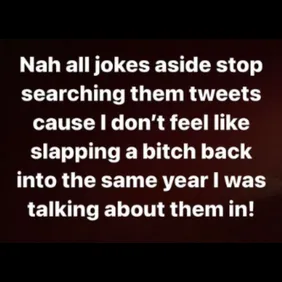 After deleting her account, she took to her Instagram story to explain her decision and unveil her new Twitter account. "Nah all jokes aside stop searching them tweets cause I don’t feel like slapping a b*tch back into the same year I was talking about them in!," she wrote. Additionally, she shared a photo of herself holding a large purse, with the caption: "All my old tweets in that purse."