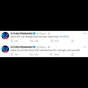On Twitter, Future didn't directly mention his case but he did tell his followers to move on. "Everyone had a option and a plan then have every excuse in the world when they fail. Love yourself more 2021," said the rapper. "Leave me out the convo 2021 and see how far u can get. Love yourself. Same Sh*t y’all already knew last year. Same topic #BORING." Check out the posts below.