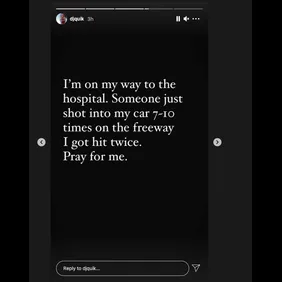 "I'm on my way to the hospital," said DJ Quik on Instagram Stories. "Someone just shot into my car 7-10 times on the freeway. I got hit twice. Pray for me."
