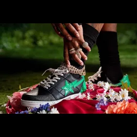 In the photos below, you can see that the shoe carries a ton of serpent-like aesthetics. From the course black materials on the toe box to the green Star on the sides that is bumpy to the touch like a slithering snake, these are undeniably inspired by the WUNNA artist. Gunna's name is even placed on the tongue for good measure, while "SLATT" is written on both back heels.