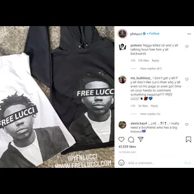 In the meantime, Lucci and his crew are making the most out of an unfortunate situation. Over on his Instagram, Lucci uploaded a photo showing his new "Free Lucci" merch. There are t-shirts and hoodies with Lucci's mugshot on them, available from $13 to $28. The rapper is being praised for keeping the money flowing while locked up as his fans await more news regarding the development of the case.