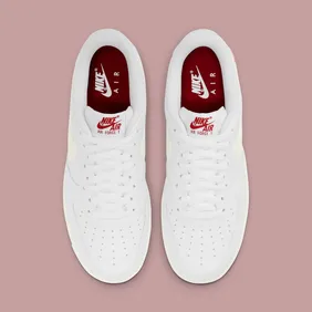 In the official images below, you can see that the sneaker will have a white leather base, all whole a creamy beige swoosh is placed on the sides. The midsole also matches this creamy shade, which leads to a nice little contrast. From there, we have a red heart near the back heel, all while Nike Air branding is written in red on the back heel and the tongue.