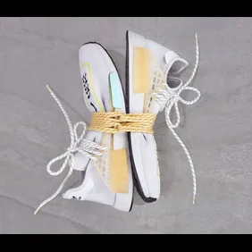 These three new colorways include "Dash Green," "Sesame," and "White." All three of these models are detailed in the photos below, and as you can tell, they carry forth that great NMD Hu aesthetic, except the primeknit upper is swapped out with mesh material. The release of these is particularly unique as it's being reported that the "Dash Green" model is coming out globally in limited quantities. Meanwhile, the "Sesame" version will be exclusive to North America, all while the "White" model is for Asia-Pacific, only.