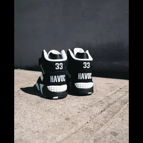 With this in mind, Havoc decided to team up with Ewing Athletics for a brand new collaboration on the Ewing Focus, which is a silhouette that debuted back in 1993. As you can see from the photos below, this model is black and white, with various references to Havoc throughout. For instance, the back heel has Ewing's number 33 while underneath, we can see Havoc's name. Havoc is also placed on the tongue, right underneath branding that says The Infamous. This is a must-cop pair for any Mobb Deep fan out there and if you're from New York, these will be near and dear to your heart.