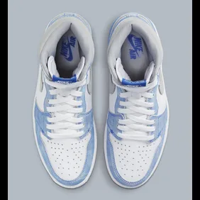 As you can see, this shoe has a unique color scheme to it as the base is made with white leather, all while the overlays are a bright shade of blue suede. This blue has a bit of a tie-dye feel to it, all while the Nike swoosh and cuff are dressed in grey. These colors go together perfectly and if you are a big of the Air Jordan 1 High OG, this is shaping up to be one of those must-cop colorways.