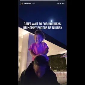 Sharing a shot of himself and Stormi, Travis wrote: "Can't wait to for the holidays. Ur mommy photos be blurry."