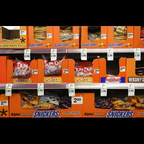 "The placement of snacks near the register increases the likelihood that people purchase those foods. In addition, most of the candy, soda, and chips in checkout aisles are placed at eye-level and within reach of children, undermining parents’ efforts to feed their children well.