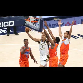 To make matters worse for the Thunder, the Pacers were missing several key players including Malcolm Brogdon, Jeremy Lamb, Myles Turner, and JaKarr Sampson. Pacers' Domantas Sabonis recorded a triple-double by halftime and finished with 26 points, 19 rebounds, and 14 assists.