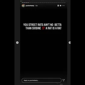 "You street rats ain't no betta than Six9ine," wrote the Memphis stepper on Instagram Stories. "A rat is a rat."