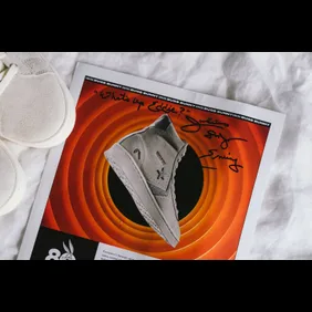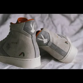 In the photos below, you can see that the sneaker is covered in a creamy beige suede, all while grey suede is placed on the back heel and the sides. Near the back heel, we get Bugs' signature carrot all while his "What's Up Doc" catchphrase is placed just above the Converse branding on the side. There is even an outline of Bugs' head on the back heel, which brings the whole look together. In the package we received, there was also a sparkly Funko Pop which showcases the rabbit in a tuxedo, all while holding a top hat. This package also came with a special catalog that features all of the items featured within the collaboration. It's even signed by the legendary Dr. J himself, which makes this package a basketball fanatic's dream