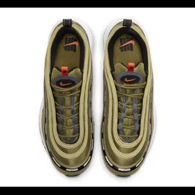 In the official photos below, you can see two new colorways that are listed as "Militia Green/Orange Blaze/White/Black" and "Black/Volt/Militia Green/White." These models are unique in their own right although they do contain come familiar details that sneakerheads will certainly appreciate. For instance, both colorways have a strip of material that wraps around the entire silhouette that says "Undefeated" in a repeated fashion. This is an aesthetic that has made its way to numerous Undefeated x Nike Air Max 97 collabs in the past, so longtime sneakerheads will certainly appreciate the look.