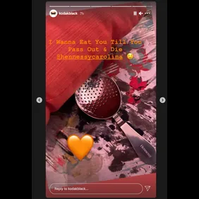 Updating his Instagram story, Kodak came through with a spicy message for the socialite. "I Wanna Eat You Till You Pass Out & Die @hennessycarolina," he wrote on the social media platform, adding a drooling emoji for good measure. Hennessy has not responded to the message yet but we'll keep you posted if she ever does.