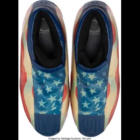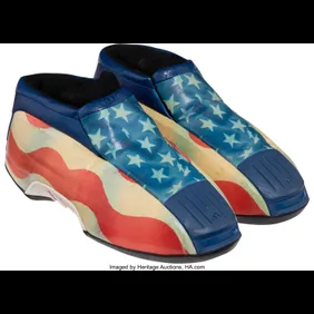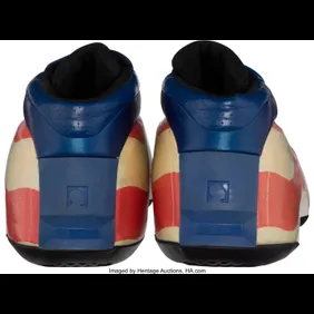 Back in 2002, while LeBron James was a student at St. Vincent-St. Mary's, Kobe actually gifted LeBron a pair of Adidas Kobe 2s, in a special American flag colorway that was created to honor those who passed away in 9/11. In an interview with ESPN, LeBron revealed that he wore these kicks in a high school game against Carmelo Anthony, and now, the shoe is going up for auction via Heritage Auctions. In the images below, you can see the unique aesthetic of the shoe, which features stars and stripes all over the upper.