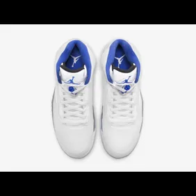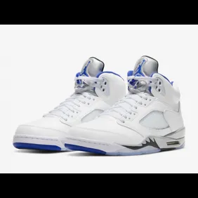 This latest shoe is appropriately being dubbed "Stealth 2.0" and the entire shoe can be viewed in the official images below. As you can see, most of the shoe is covered in white leather, all while silver and blue accents are placed all the way throughout. It's a pretty clean look that should keep fans excited, especially those who have a particular love for the Air Jordan 5.