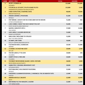 Youngboy Never Broke Again follows closely with a projected 28,000 equivalent album units. Since his album premiered a couple of days early on YouTube, that could be taking away from his numbers. That looks to be enough to lock down somewhere around #15 though.
