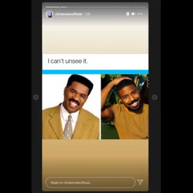 C. Breezy posted a side-by-side photo of Steve Harvey, Lori's stepfather, and Jordan, and the similarities couldn't be ignored, especially as they both donned a thick mustache. "I can't unsee it," was written above the photos of the two smiling men in Lori's life. The response was swift as fans shared the picture, but it seemed as if Brown posted it in good fun, not shade.