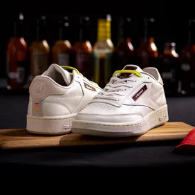 Now, Hot Ones has teamed up with Reebok for a sneaker collab that embraces the lore of the show. Each sneaker in the collab has been dubbed a "meal," and on the tongue, each shoe has its own Scoville rating. The first silhouette in the collab is the Club C, which features a white leather upper and Hot Ones branding throughout. Thanks to a 1,985 Scoville rating, the shoe is seen as mild. The Reebok Classic Leather gets a "Medium" rating thanks to its 198,301 Scoville rating, all while providing a truly unique colorway, complete with chicken wings on the outsole. Of course, the biggest draw here is the Reebok Shaqnosis with a "hot" rating of 1,995,000 Scoville units. This shoe has a black leather upper, complete with orange, red, and green rings throughout the upper.