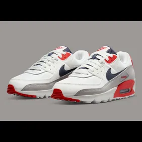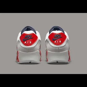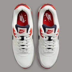 The latest colorway of the Air Max 90 to be shown off definitely has some nice patriotic vibes to it as the upper is mostly covered in white all while some red and blue are sprinkled throughout as a way to change things up a bit. There is even a nice bit of silver on the sides which helps give it an extra edge overall. This is definitely a solid Air Max 90 and one that many will watch out for ahead of July 4th.